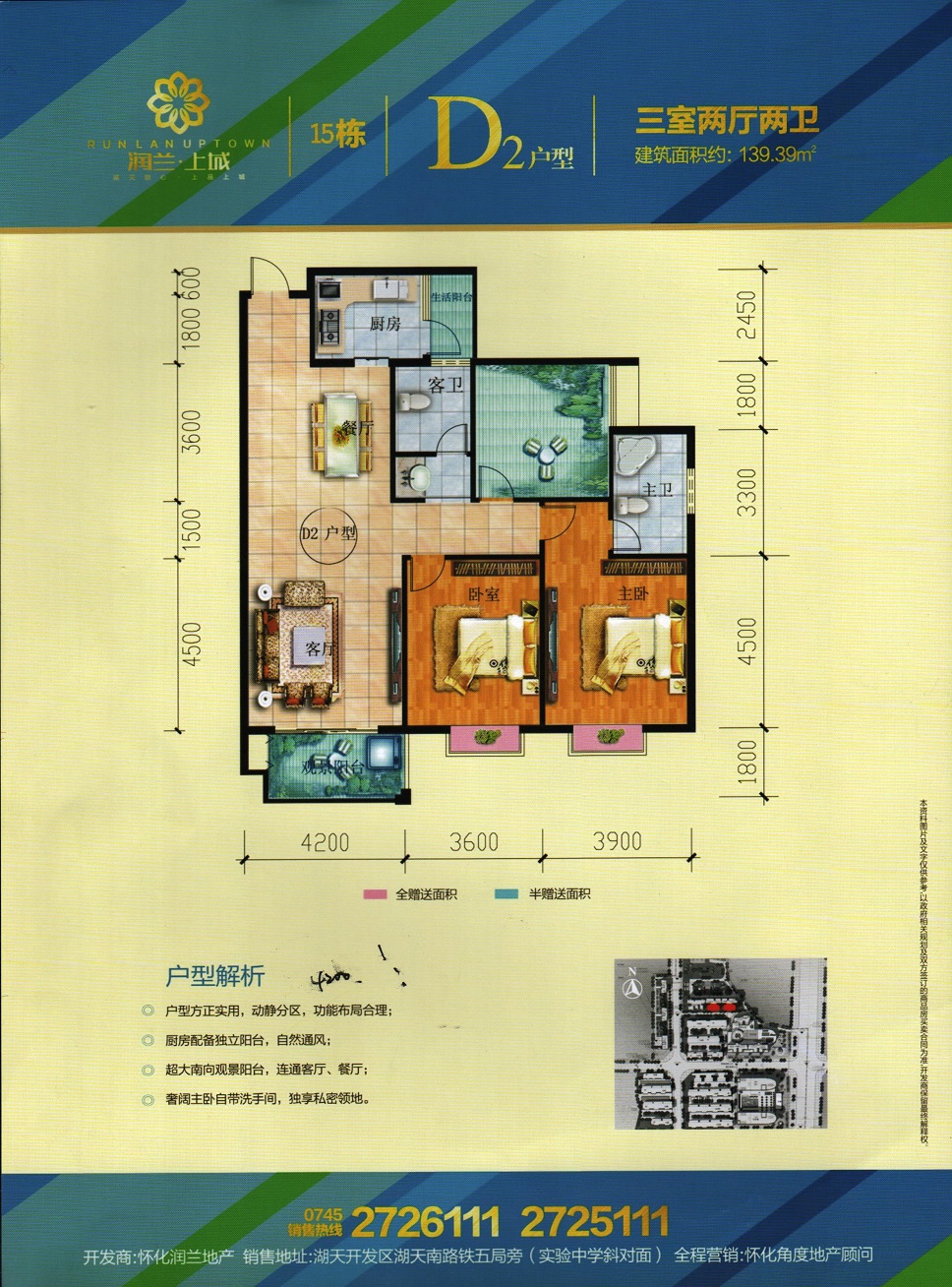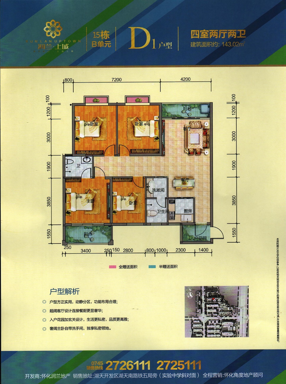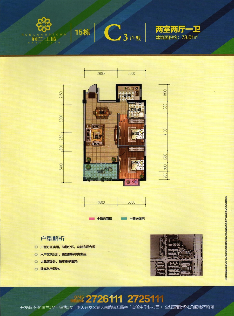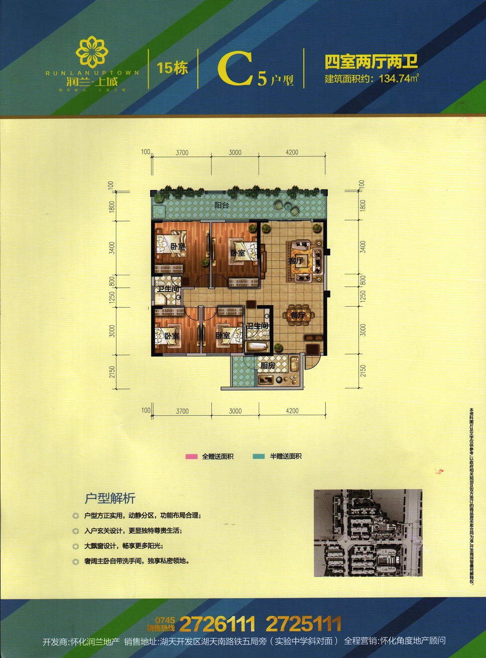 由懷化潤(rùn)蘭房地產(chǎn)開(kāi)發(fā)有限責(zé)任公司開(kāi)發(fā),地處懷化市湖天開(kāi)發(fā)區(qū),總占地面積120畝,總建筑面積約26萬(wàn)平米,容積率4.34,總戶(hù)數(shù)約700戶(hù),停車(chē)位1500個(gè),項(xiàng)目由3棟高層住宅及一棟酒店和一棟辦公樓組成。項(xiàng)目與天星廣場(chǎng)及太平溪風(fēng)光帶僅咫尺之遙。